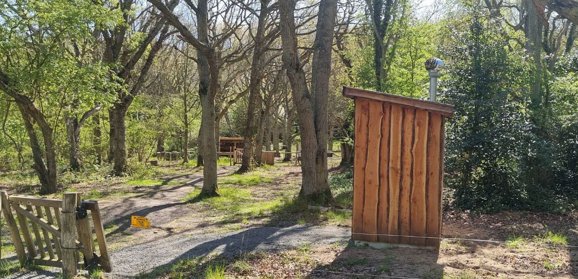 Fenced area with a fire pit